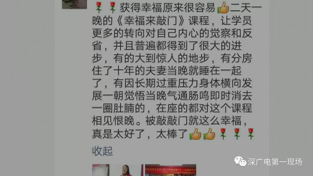 李先生說(shuō),價(jià)格雖然有點(diǎn)兒高,但如果能夠讓妻子變好,那也無(wú)話可說(shuō),然而妻子參加完后面課程回來(lái)以后,像是被洗腦了一樣。他偷偷看妻子的微信群,都在談?wù)撜n程有神奇的效果,有人在朋友圈推銷說(shuō):聽了課程之后,分房住了十年的夫妻當(dāng)晚就睡在一起。