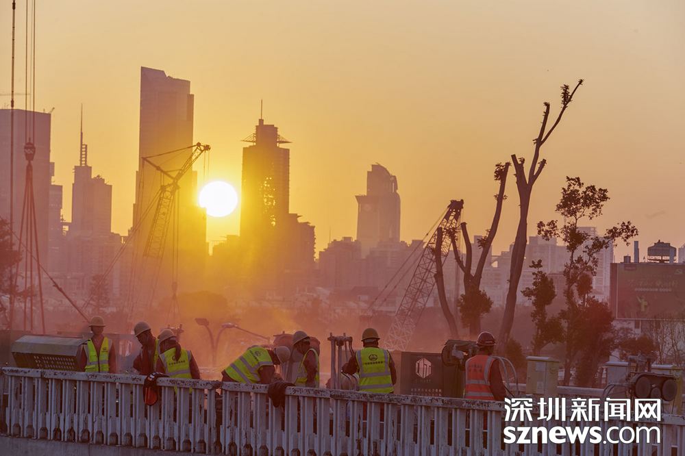 深圳新聞網(wǎng)2019年2月3日訊(記者 黃賢娟 趙穎致 黃婉婷 胡志方 林婉婷)與日漸冷清下來的街道商鋪不同,春節(jié)前夕的黃木崗立交仍是一片繁忙景象。這是2月2日傍晚,數(shù)百名身穿橙黃馬甲的工人正在忙著將立交橋切割分離。平板車、模塊車往來穿梭,將一塊塊拆卸下來的橋體陸續(xù)運(yùn)走。夕陽西下,橙黃色工服反射出點點熒光,成為安靜的城市中獨特的點綴。