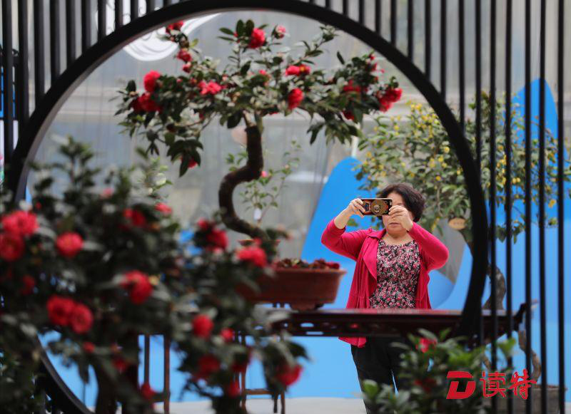 大年初五,天氣溫暖舒適,園博園里的游客一撥接一撥。也許是對中式傳統(tǒng)風(fēng)格的青睞,被茶花展吸引的客流中有不少中老年游客。"天氣好,花也美,美好的景色人人愛看,人老了心還沒老,也過來賞賞花拍拍照,高興?。⒛杲呤耐醢⒁谭浅i_心地說。