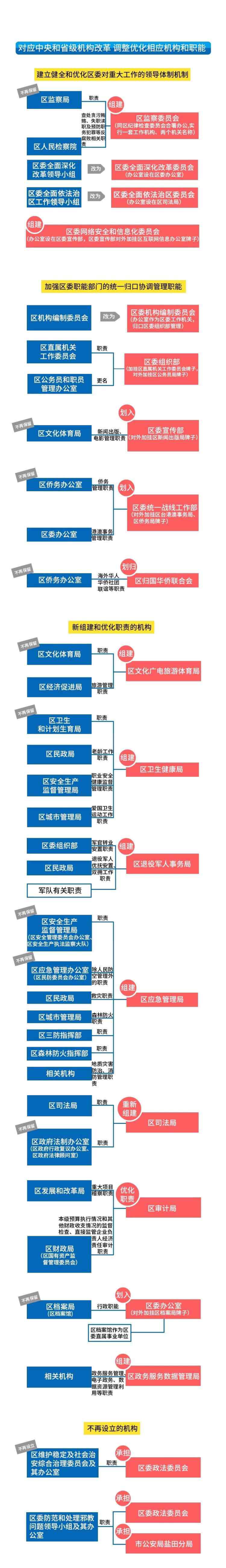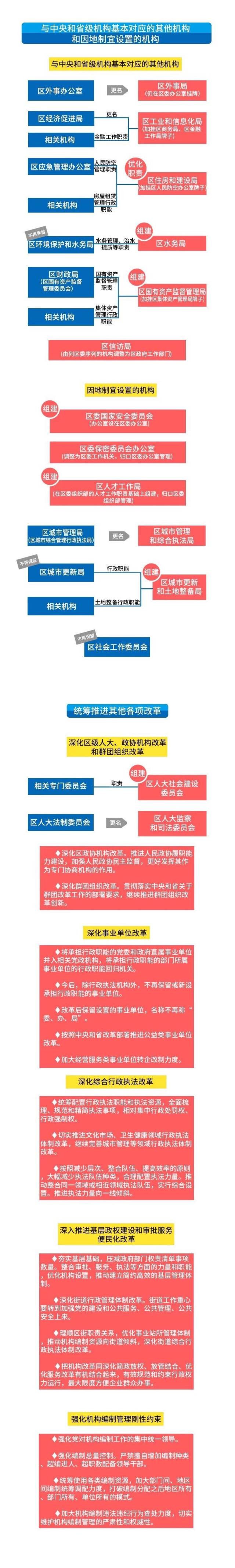 本次區(qū)級機構改革,總的要求是中央及省明確的改革任務要堅決落實到位,主要機構設置同省、市保持基本對應。同時,又充分體現(xiàn)地方機構綜合設置的特色,以推進黨政機構職能優(yōu)化協(xié)同高效為著力點,改革機構設置,優(yōu)化職能配置,深化轉(zhuǎn)職能、轉(zhuǎn)方式、轉(zhuǎn)作風,提高效率效能,積極構建系統(tǒng)完備、科學規(guī)范、運行高效的機構職能體系,構建簡約高效的基層管理體制。