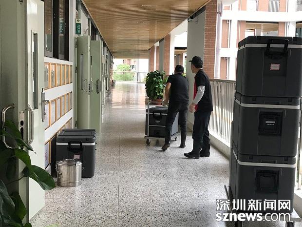 送餐人員在上午課程結(jié)束前將午餐送到每個(gè)班級(jí)門(mén)口