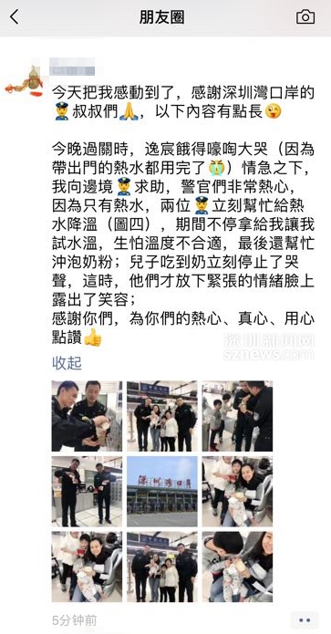 受助旅客發(fā)圈感謝深圳灣邊檢民警