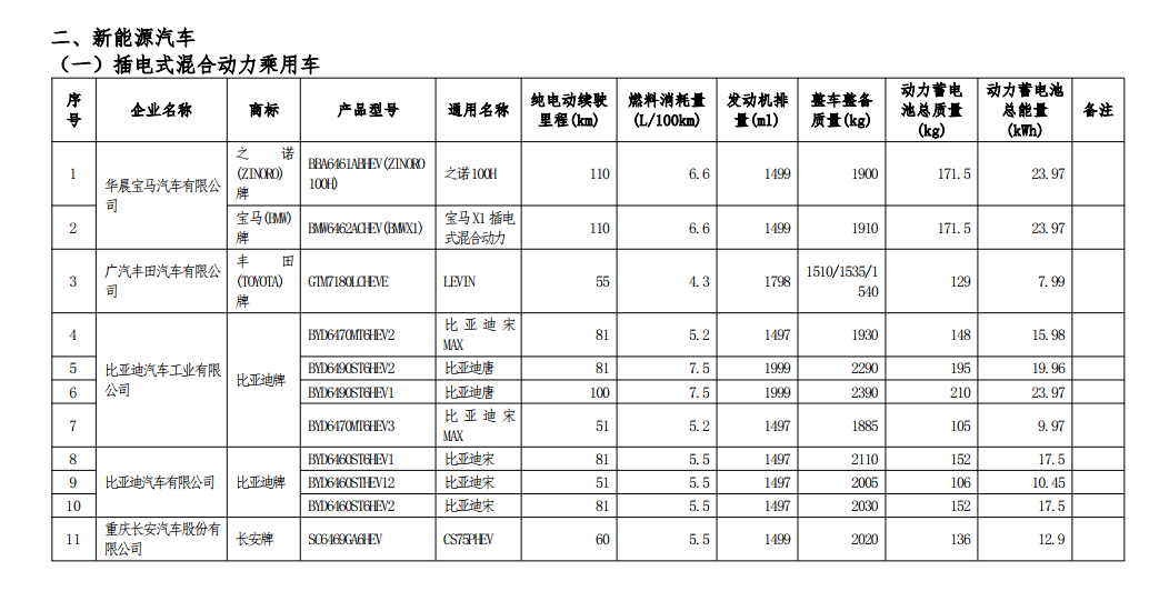 比亞迪多款混合動力車入選