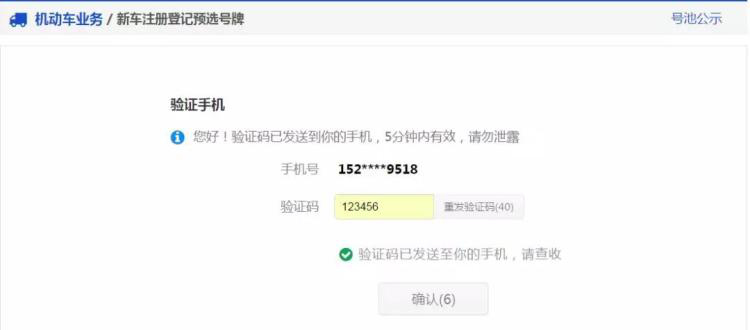 用戶須獲取并錄入手機(jī)短信驗(yàn)證碼,驗(yàn)證預(yù)選號(hào)牌的手機(jī)號(hào)碼。