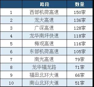 2018年接報涉及行人進入高快速路排名前十的路段是:
