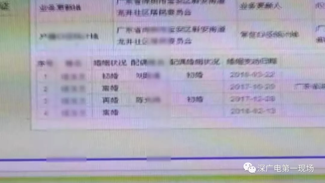 如此一來(lái),伍小姐上段婚姻是初婚的說(shuō)法也得到了證實(shí)。記者隨后陪同伍小姐來(lái)到登記其為結(jié)婚狀態(tài)的新橋街道沙企社區(qū)工作站。說(shuō)明來(lái)意后,工作人員也對(duì)伍小姐的信息進(jìn)行了核查。
