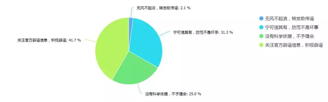 “舌尖上的謠言”長期在朋友圈里“屢辟屢傳”,其中一個重要原因是因為消費者有著極大的安全焦慮。食品謠言的存在,不僅說明了消費者在相關(guān)科學(xué)知識方面的空白,也反映出社會對食品安全的擔(dān)憂。不過經(jīng)過相關(guān)部門和媒體的大力宣傳,已經(jīng)有41.7%的受訪者會主動關(guān)注官方辟謠信息,積極辟謠。