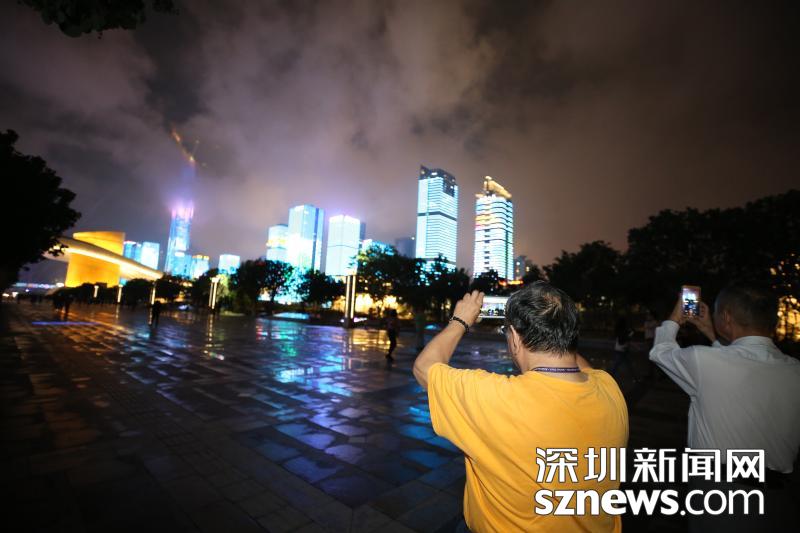 現(xiàn)場觀看燈光秀的市民