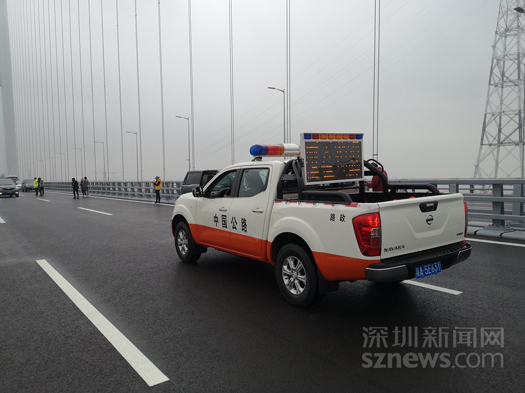 記者4月1日在虎門二橋上駕車體驗(yàn),虎門二橋的雙向8車道,與虎門大橋設(shè)計(jì)雙向6車道相比,路面更加寬敞。橋面車道旁邊設(shè)有滅火器以應(yīng)對(duì)緊急情況。