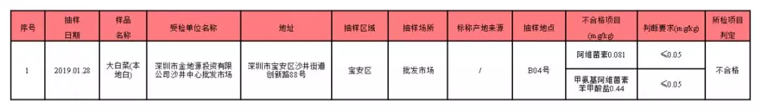 蔬菜有1份抽樣樣品不合格
