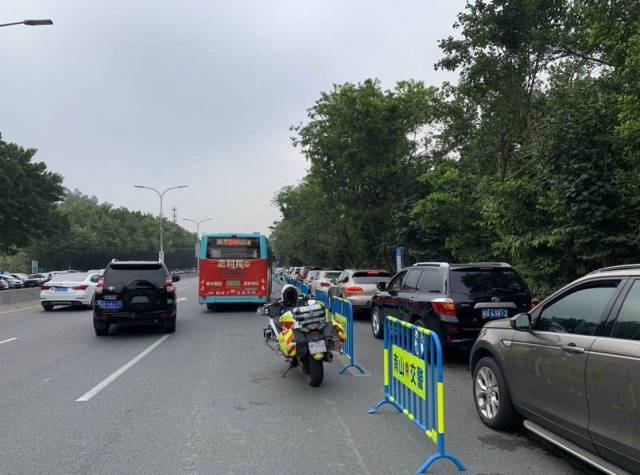 深圳交警發(fā)現(xiàn)情況后立即通過(guò)步伐保持多次疏解和現(xiàn)場(chǎng)警力管控的方式來(lái)疏導(dǎo)排隊(duì)車輛,40分鐘后排隊(duì)長(zhǎng)度降為130米,降幅78%。