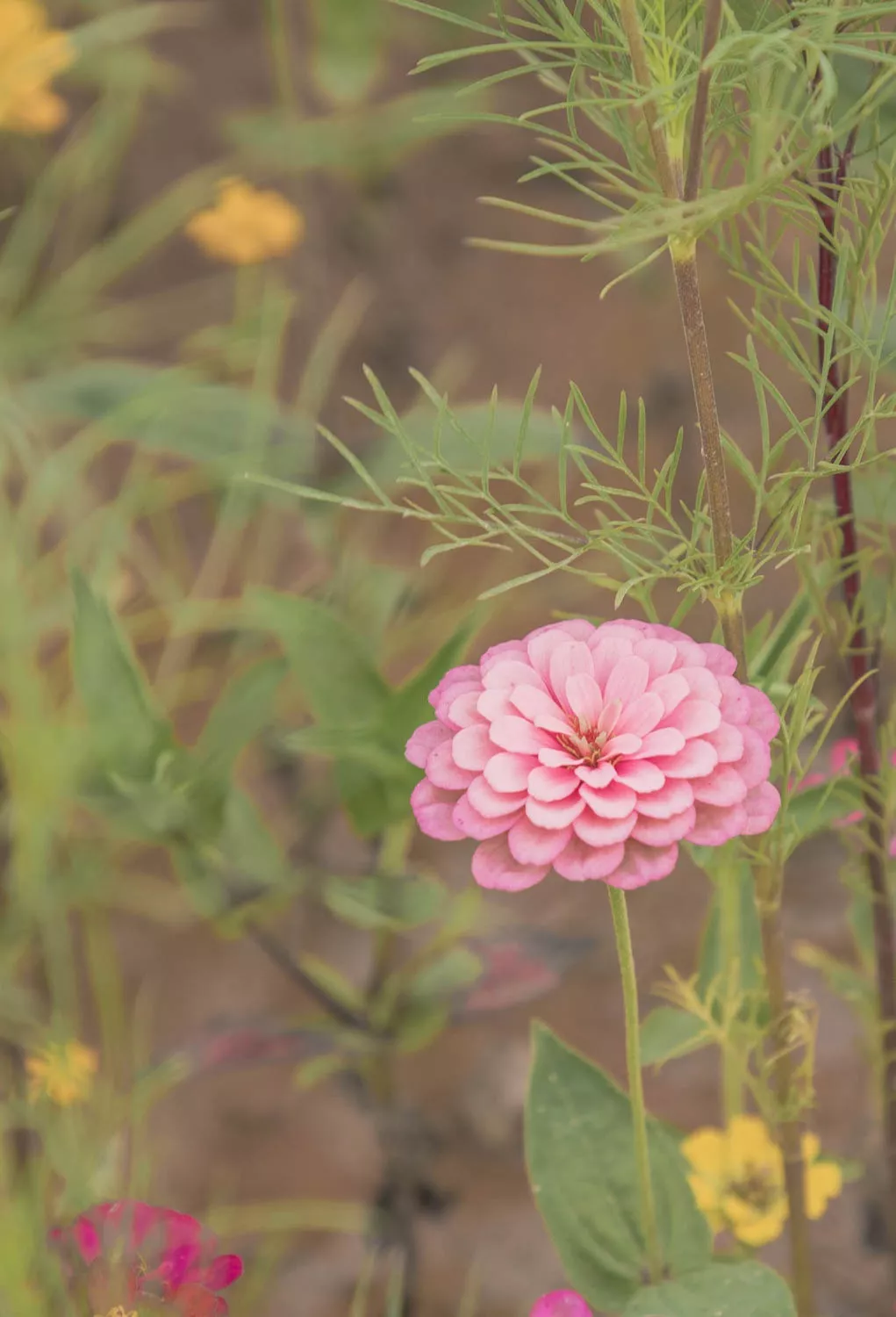 菊類花多種多樣,難以辨認(rèn),但百日菊卻很特別,它的花瓣從花心向外一輪一輪延展,既像水面漣漪,又似樹(shù)木年輪。