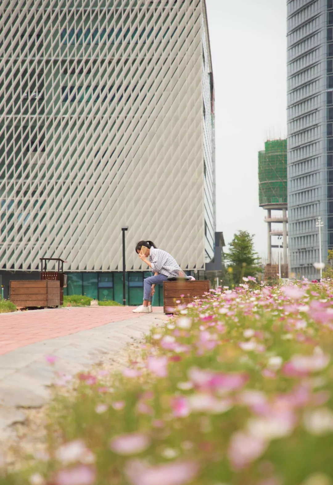 從寶安圖書(shū)館步行數(shù)十步,便是一大片浪漫的花海。風(fēng)從不遠(yuǎn)處的海面吹來(lái),那些隨風(fēng)起舞的白色、黃色、紫色、紅色、粉色的小花,就是秋英。