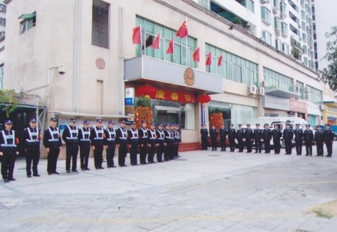 思緒隨著照片一頁(yè)頁(yè)翻飛,1991年5月28日,經(jīng)國(guó)務(wù)院批準(zhǔn),福田保稅區(qū)正式成立,一曲改革開(kāi)放的激揚(yáng)樂(lè)章在這片土地奏響,大興土木,人心思進(jìn)。1997年,隨著福田保稅區(qū)入駐企業(yè)的增加,周邊住宅區(qū)入住人員也逐漸增多,各種刑事、治安案件迅速上升,治安壓力越來(lái)越大,為加強(qiáng)社會(huì)治安管理,方便群眾辦事,深圳市福田保稅區(qū)公安處正式成立,這便是福保派出所的前身。當(dāng)時(shí)的公安處轄區(qū),東起國(guó)花路,西至益田南路、新洲路,南至深圳河,北至福強(qiáng)路,面積約2.13平方公里。