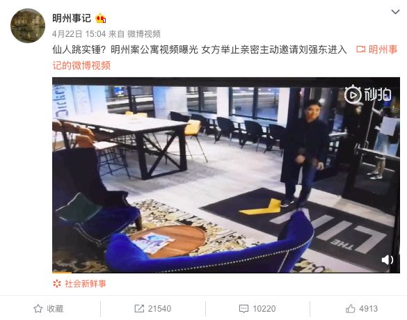 就在人們以為事件就此平息的時(shí)候,又爆出一系列和該案有關(guān)的料。首先是本案當(dāng)事人LIUJINGYAO宣布起訴京東集團(tuán)及劉強(qiáng)東。4月22日、23日微博上爆出監(jiān)控視頻以及劉強(qiáng)東美國(guó)律師和LIUJINGYAO之間電話談話的錄音。