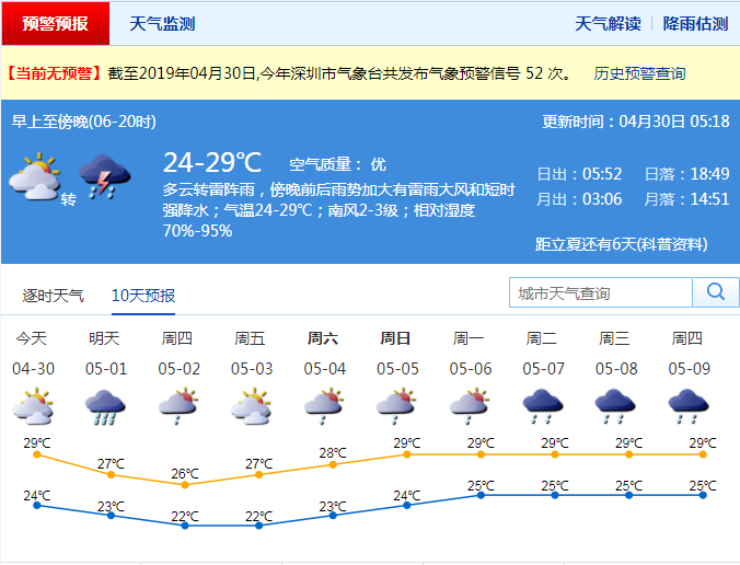 據(jù)市氣象局預(yù)測,30日到5月1日早晨我市有大到暴雨,伴有雷暴、8級短時大風(fēng)和短時強(qiáng)降水等強(qiáng)對流天氣,1日上午降雨明顯減弱;2-5日多云為主,間中有短時陣雨,其中2-3日沿海、高地和海區(qū)有7-8級偏東風(fēng)。