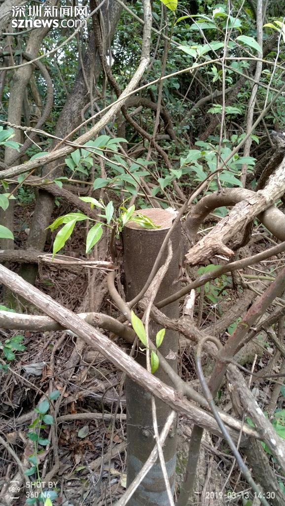 該網(wǎng)友提及的應(yīng)人石村位于深圳石巖,從地圖上看,其“后山”與羊臺(tái)山森林公園連為一體,是附近居民閑暇時(shí)度假踏青的重要選擇。據(jù)了解,網(wǎng)友“詩奴L”于今年3月中旬上山游玩,游玩途中發(fā)現(xiàn)原本茂盛的野生沉香樹大多遭人砍伐?!安环ǚ肿痈F盡一切手段,用鉆、削、劈、鋸等來對(duì)沉香樹進(jìn)行摧殘,這簡直是屠殺式的洗劫!”該網(wǎng)友表示,看到這么多野生沉香樹被殘暴砍伐,真地讓人很氣憤。