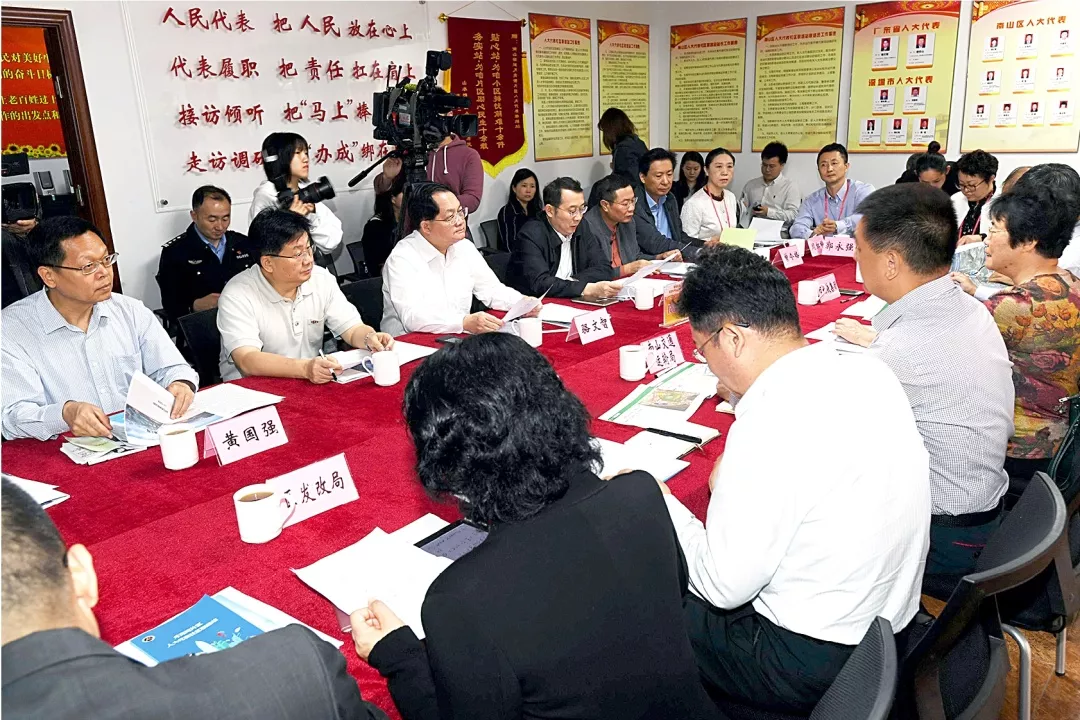 5月8日,南山街道月亮灣片區(qū)人大代表社區(qū)聯(lián)絡(luò)站召開代表議事會。深圳市人大常委會主任駱文智、南山區(qū)委書記王強(qiáng)、區(qū)人大常委會主任麥林光,與駐站市、區(qū)人大代表,居民代表圍繞“完善地鐵站點(diǎn)與地面交通接駁,緩解月亮灣片區(qū)居民出行難”主題進(jìn)行熱烈討論。