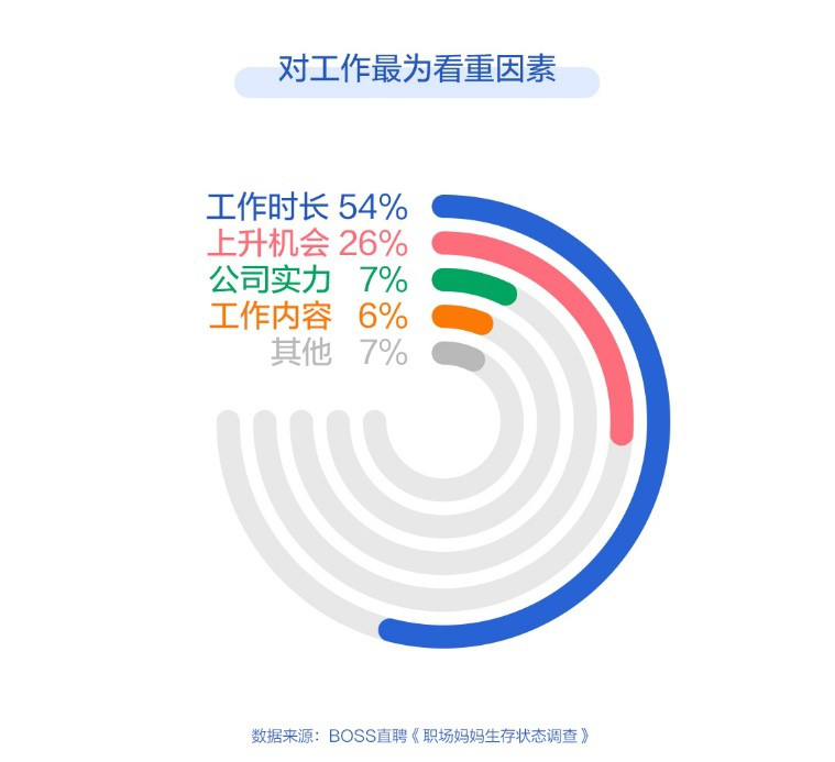根據(jù) BOSS直聘發(fā)布的《2019職場(chǎng)媽媽生存現(xiàn)狀調(diào)查報(bào)告》,有65%的受訪職場(chǎng)媽媽認(rèn)為自己有潛在的抑郁傾向,逾八成媽媽對(duì)孩子感到愧疚,工作時(shí)長(zhǎng)是職場(chǎng)媽媽在工作中最為看重的要素。一面是嗷嗷待哺的孩子,一面是苦心經(jīng)營(yíng)的工作,事業(yè)與家庭的平衡或成職場(chǎng)媽媽焦慮的根源。