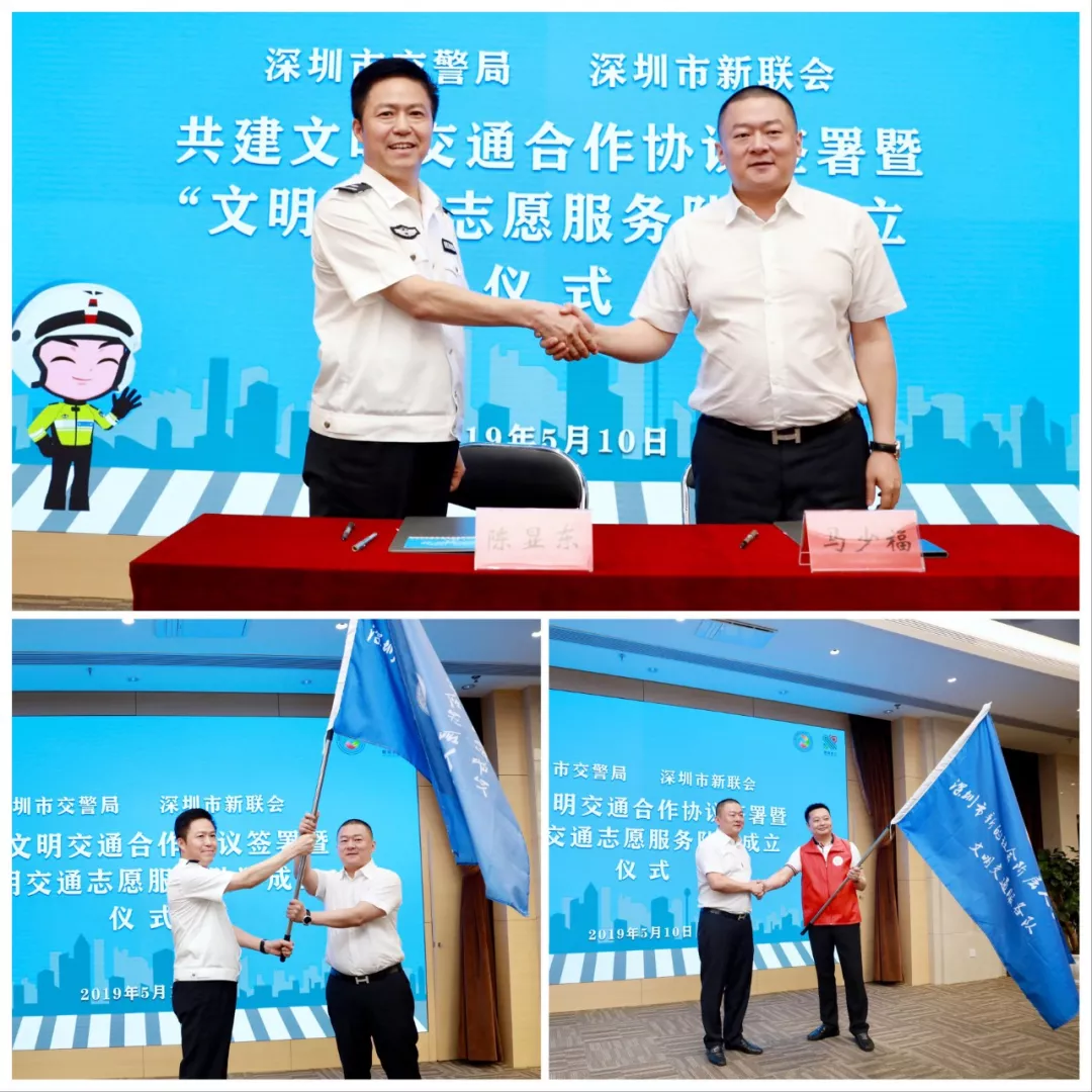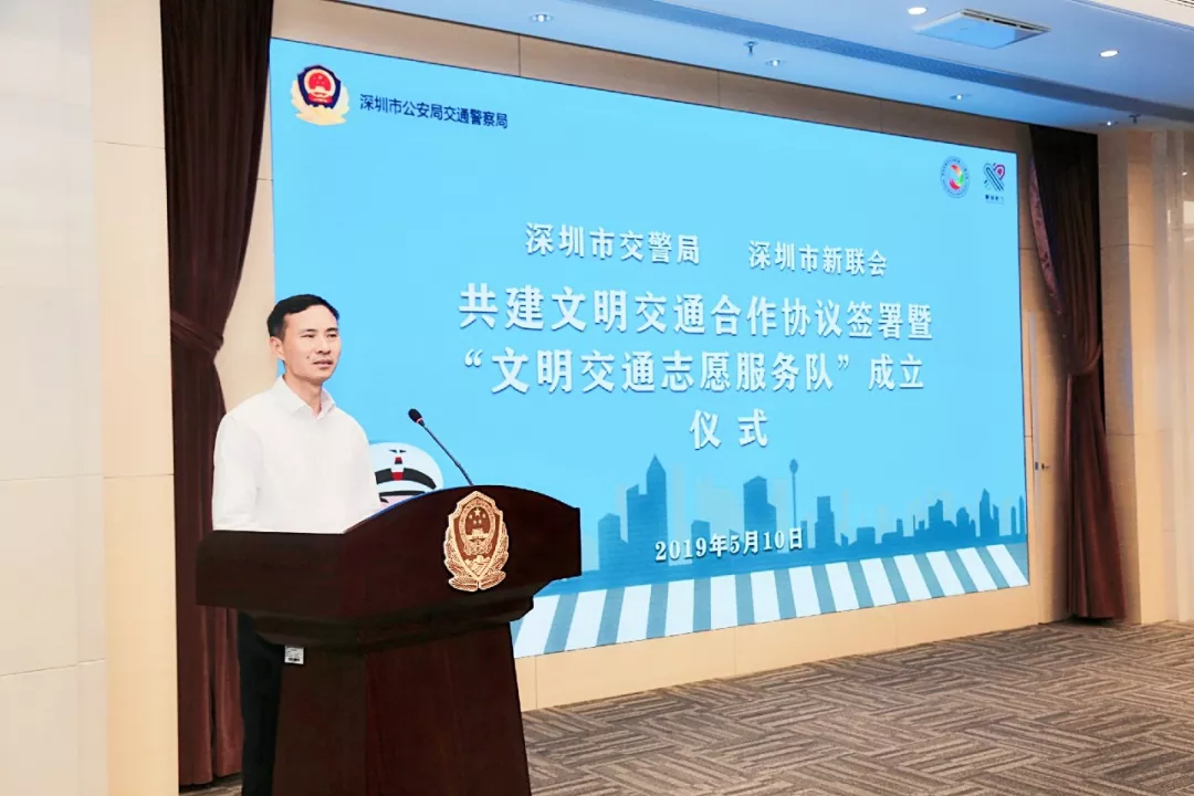 創(chuàng)文明交通城,做文明深圳人,新的社會階層人士在行動。5月10日,深圳市交警局與深圳市新的社會階層人士聯(lián)合會(市新聯(lián)會)成立“文明交通志愿服務(wù)隊”暨共建文明交通合作協(xié)議簽署儀式在深圳市公安局交通警察局舉行,市委統(tǒng)戰(zhàn)部常務(wù)副部長范坤,市交警局局長徐煒、副局長陳顯東,市政協(xié)常委、市新聯(lián)會會長馬少福等參加相關(guān)活動。