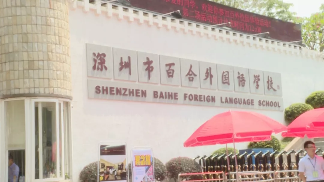 而百合外國(guó)語(yǔ)學(xué)校門前卻人山人海