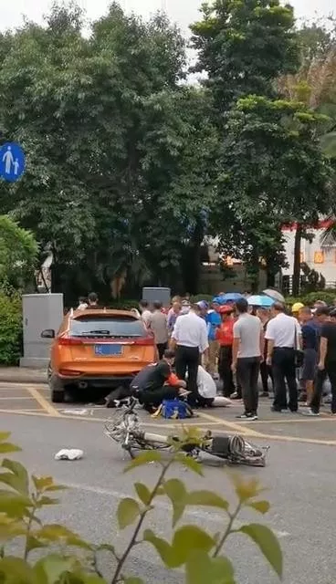 現(xiàn)場可以看到。橙色SUV已經(jīng)停在路邊。車旁是一輛被撞翻的電單車,救護車到達現(xiàn)場后,迅速對男子實施搶救。