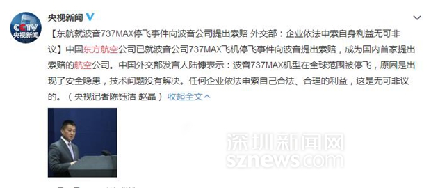 5月22日,中國國航和南方航空公司也分別正式致函波音公司,就波音737MAX停飛及前期訂購的波音737max延遲交付造成的損失提出賠償要求。自3月11日起,南航已暫停24架波音737MAX飛機(jī)的商業(yè)運(yùn)行。