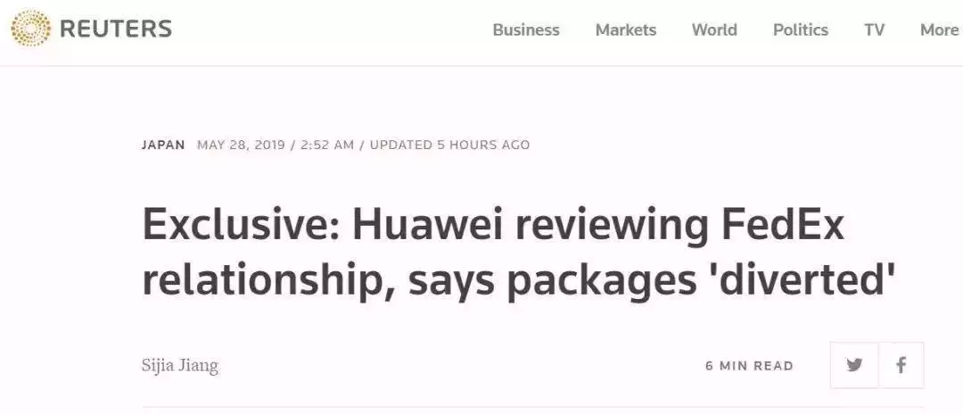 路透社28日?qǐng)?bào)道,華為表示目前正在審查與美國(guó)聯(lián)邦快遞公司的合作關(guān)系。