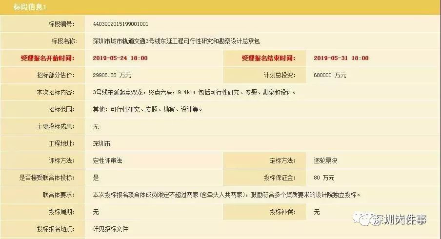 2019年5月24日,深圳市住房和建設(shè)局公布《深圳市城市軌道交通3號線東延工程可行性研究和勘察設(shè)計總承包》招標(biāo)公告。