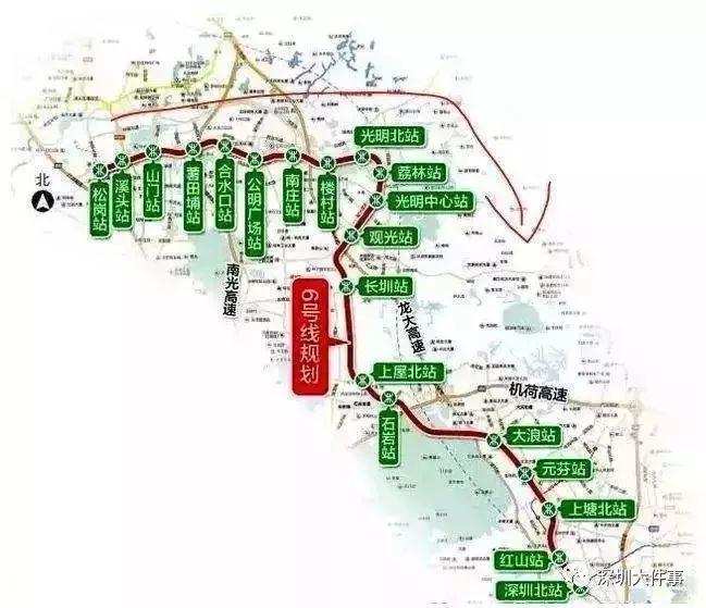 大致走向:福田保稅區(qū)、梅景、民治、油松、富士康、桂花、黎光。(具體以公布規(guī)劃為準(zhǔn))