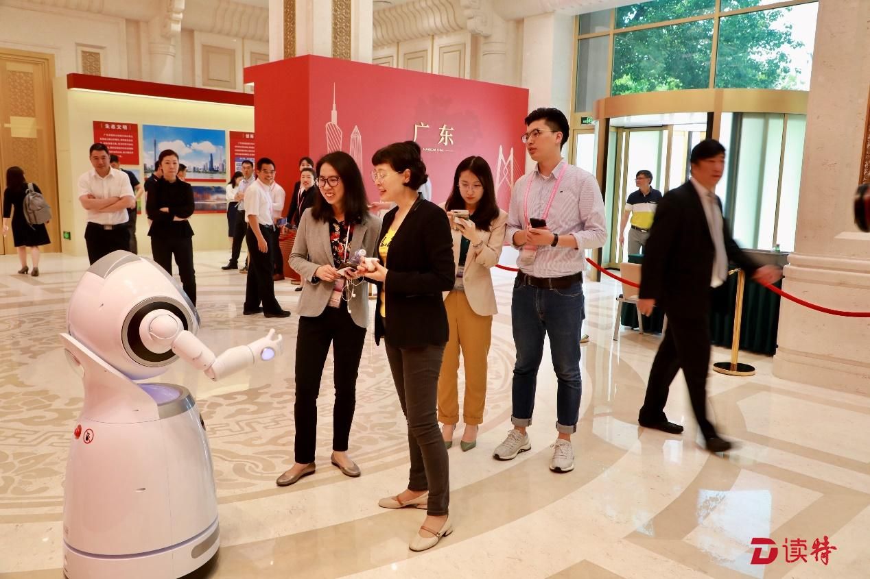 作為廣東科技創(chuàng)新的代表企業(yè),優(yōu)必選旗下的智能云平臺商用服務(wù)機(jī)器人克魯澤在新聞發(fā)布會的展示環(huán)節(jié)——“新中國成立70周年廣東省成果展”中驚艷亮相。除了代表廣東創(chuàng)新及科技實(shí)力的成果,克魯澤還擔(dān)當(dāng)起“智能迎賓導(dǎo)覽員”,向參會領(lǐng)導(dǎo)、嘉賓和媒體描繪了廣東省在新中國70周年時刻的絢麗畫卷。通過多種互動形式,克魯澤可熱情地提供答疑問詢服務(wù),詳細(xì)的介紹廣東改革發(fā)展成果等熱點(diǎn)問題。