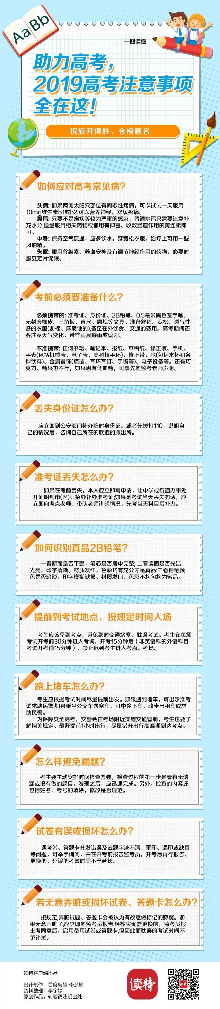 另外,小編還專門為你們準(zhǔn)備了一圖讀懂高考注意事項。