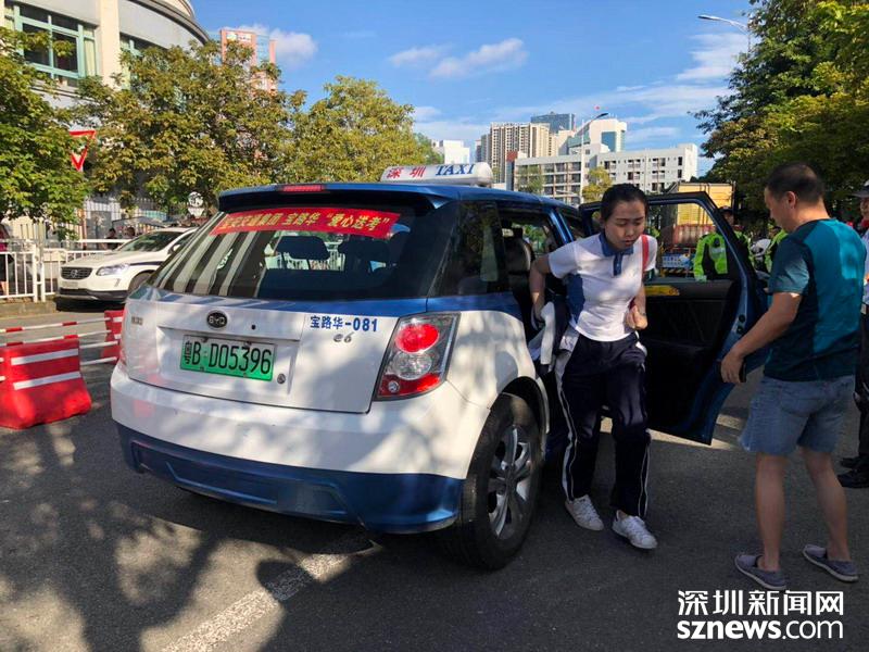 【寶安中學】一位考生從愛心送考車上下來,與父親告別后奔赴考場