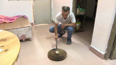 對著圓石猛砸來試驗
