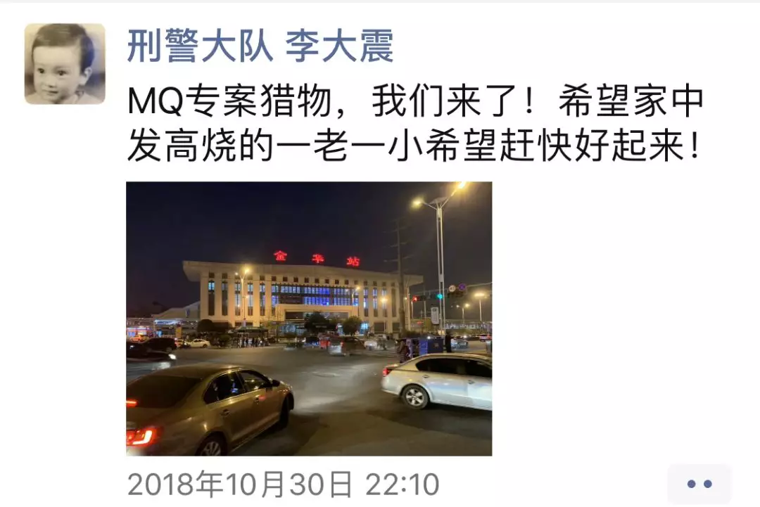 ▲刑警大隊(duì)民警丁武亭朋友圈