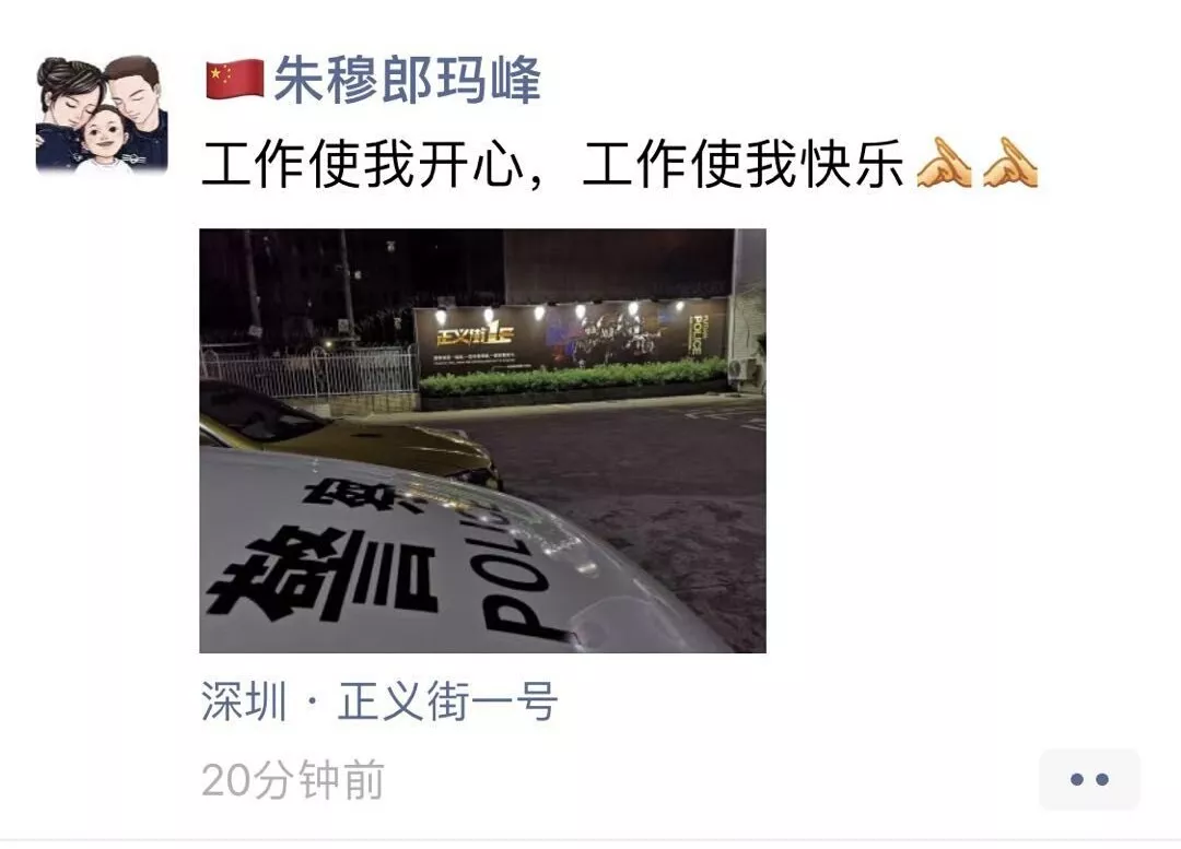 ▲華強(qiáng)北派出所民警馮長(zhǎng)涌朋友圈