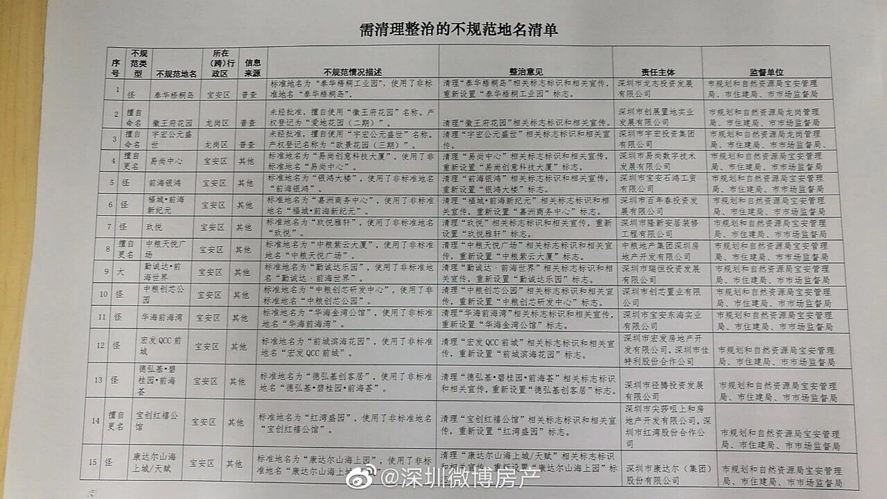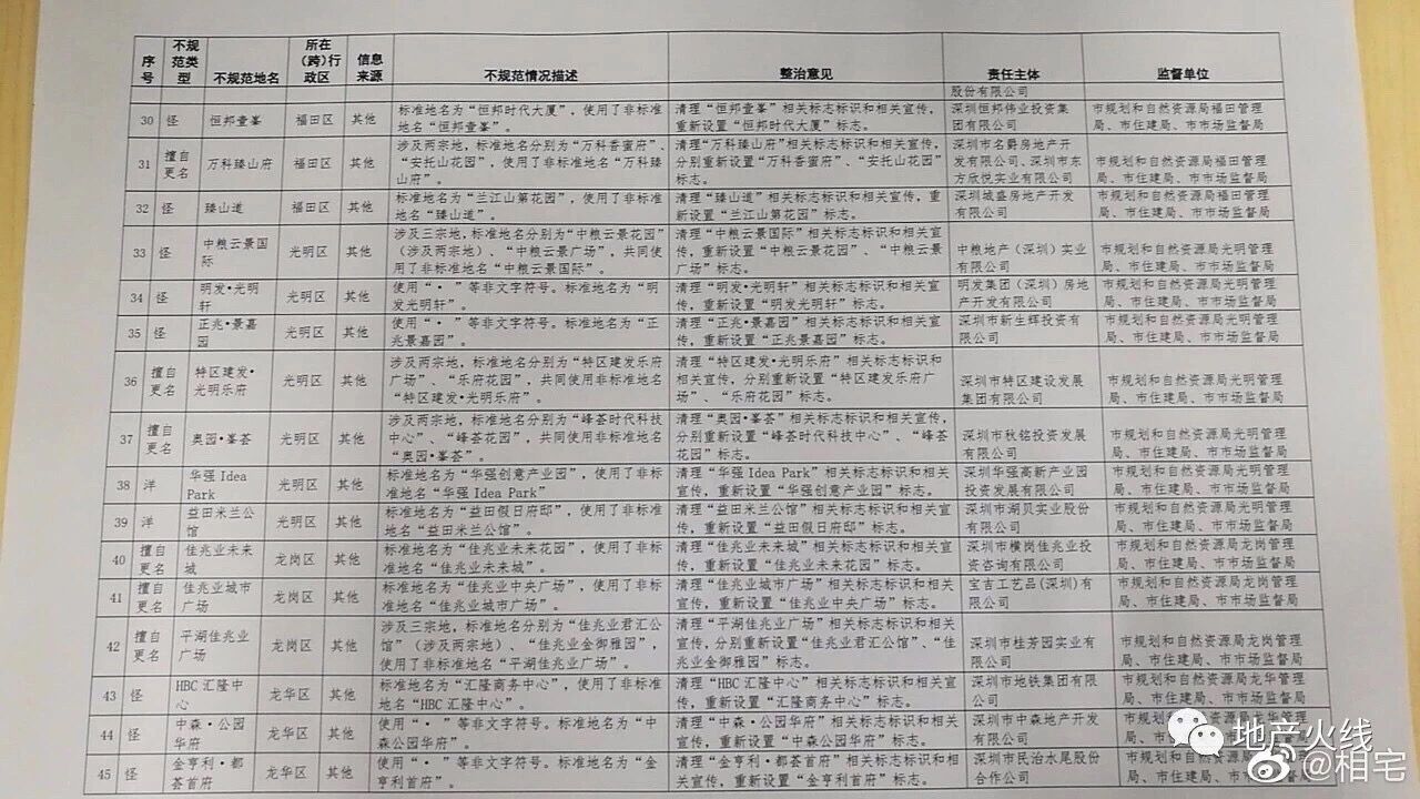 據(jù)了解,首批名單中,寶安是重災(zāi)區(qū),共有24個在列;光明7個、龍崗坪山羅湖均為6個、龍華5個、福田4個、南山2個、鹽田和大鵬均為1個。
