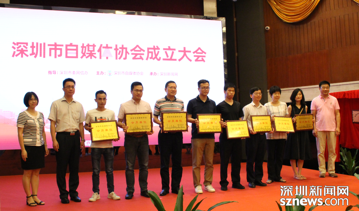 深圳市委網(wǎng)信辦副主任王遠(yuǎn)輝、深圳報(bào)業(yè)集團(tuán)、市社會(huì)組織管理局有關(guān)同志為市自媒體協(xié)會(huì)理事會(huì)、監(jiān)事會(huì)成員單位代表授牌