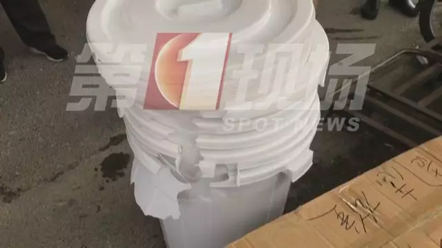 ▲放置在路邊一旁的水桶被砸壞
