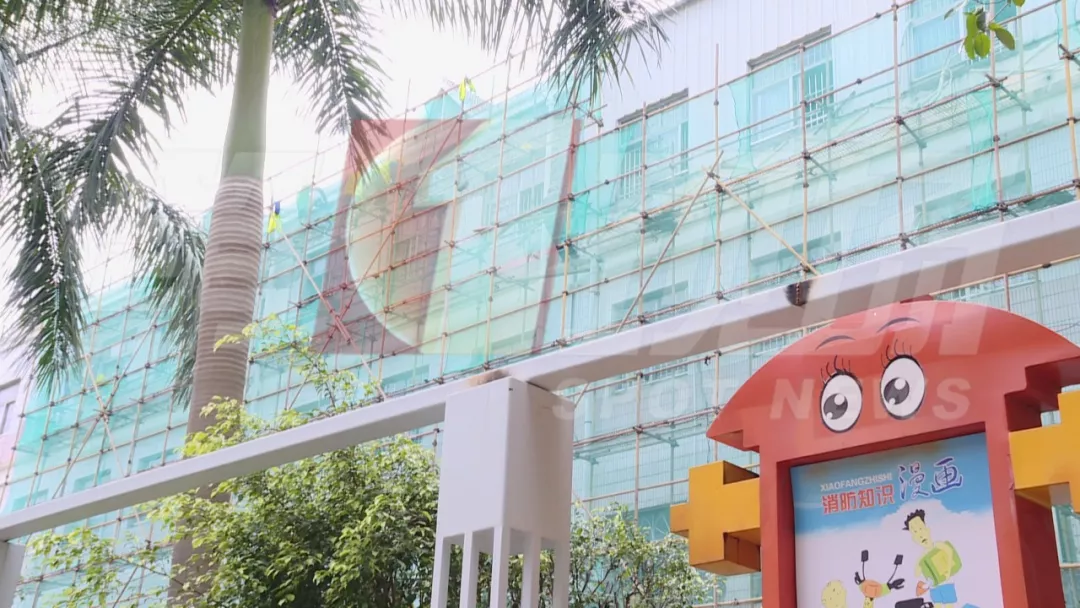 工人卻在教學(xué)樓進(jìn)行外墻施工