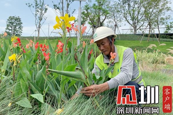 深圳新聞網(wǎng)7月24日訊(見圳客戶端、深圳新聞網(wǎng)記者 王世龍 周斐斐 王志明 羅瑜 董非 李詩(shī)萌 實(shí)習(xí)生 林怡)謝成生,來自廣西柳州,是深圳前海的一名綠化養(yǎng)護(hù)工人,主要負(fù)責(zé)前海運(yùn)動(dòng)公園的綠化養(yǎng)護(hù)工作,目前,他是養(yǎng)護(hù)部的技術(shù)班長(zhǎng)。每天早上,他都會(huì)早早地來到自己工作的地方,迎著朝陽(yáng),對(duì)花木進(jìn)行澆水、修剪、施肥,開始一天的勞作。