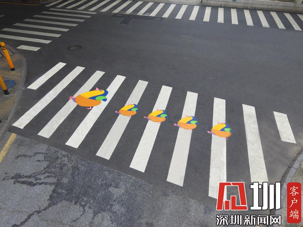 深圳試點兒童友好型交通設(shè)施,圖為彩繪有企鵝的斑馬線