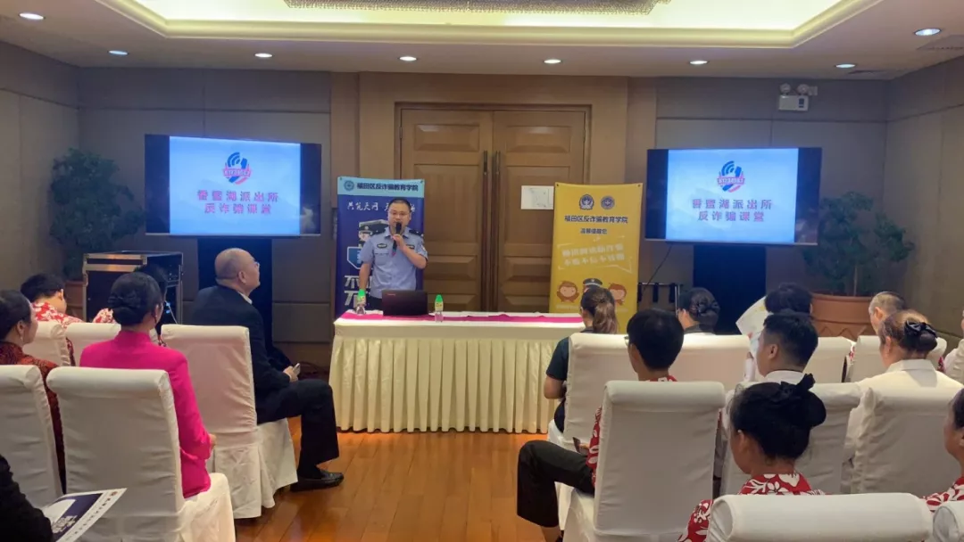 同時,第37場反詐騙教育學(xué)院公開課在香蜜湖派出所轄區(qū)丹桂軒開展。此次課程主要針對餐廳服務(wù)人員進行。根據(jù)服務(wù)人員工作時間長,平時休閑娛樂活動單一的特點,反詐講師特別著重講解“終結(jié)詐騙”小程序游戲的玩法,希望餐飲從業(yè)人員休息時多學(xué)習(xí)反詐知識,從而達到反詐目的。