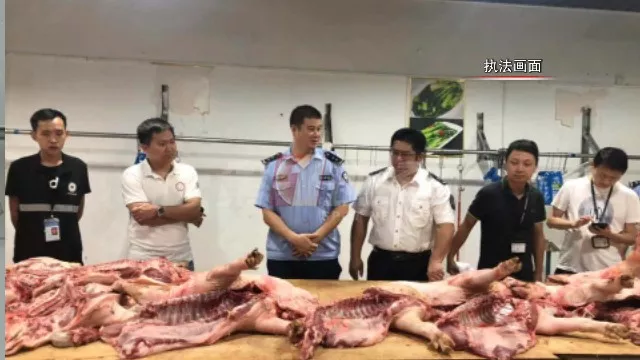 然后就看到了滿桌未經(jīng)檢驗檢疫的臭豬肉(共1600公斤)