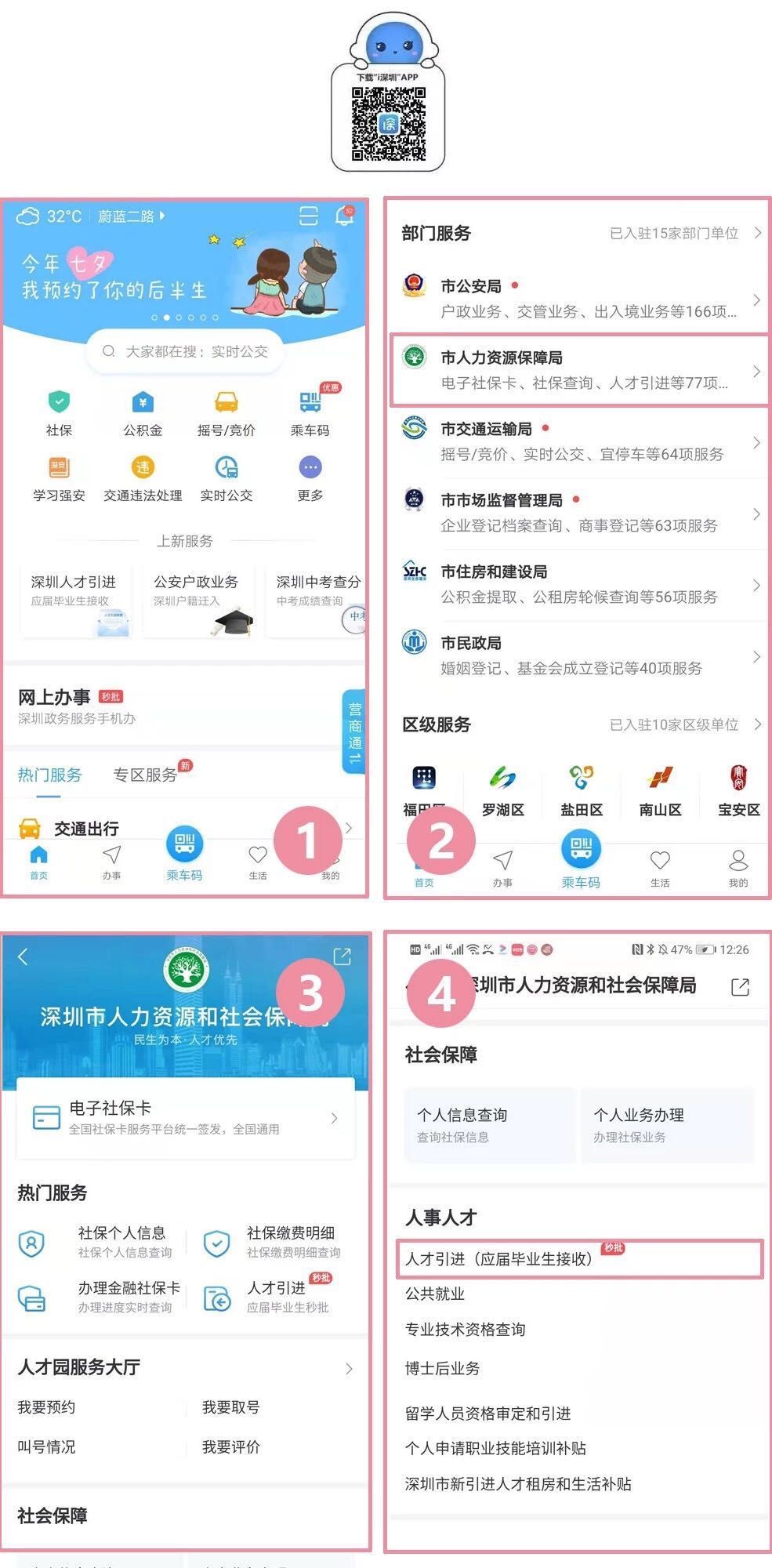 應(yīng)屆畢業(yè)生辦理人才引進時,可以選擇下載“i深圳”APP在手機上辦理,路徑為:“i深圳”首頁-市人力資源保障局-人事人才:人才引進(應(yīng)屆畢業(yè)生接收)。