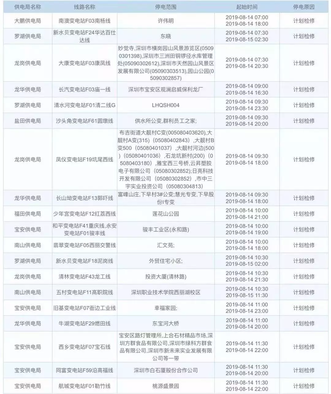 據(jù)中國南方電網(wǎng)信息,接下來這幾天深圳這些地方計劃停電,快看看有沒有你們家。