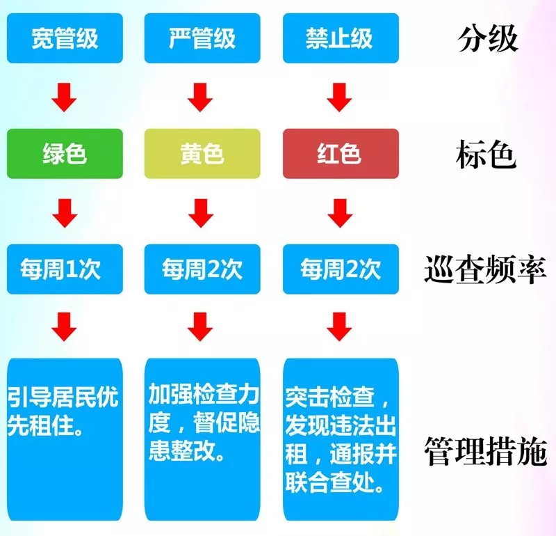 各街道在本轄區(qū)內(nèi)全面落實出租屋分類分級管理,區(qū)工作領(lǐng)導(dǎo)小組在各街道完成后開展全面驗收。