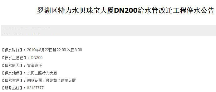 停水客戶:深圳大學(白石路南)、中國建筑第四工程局、深圳地鐵集團有限公司
