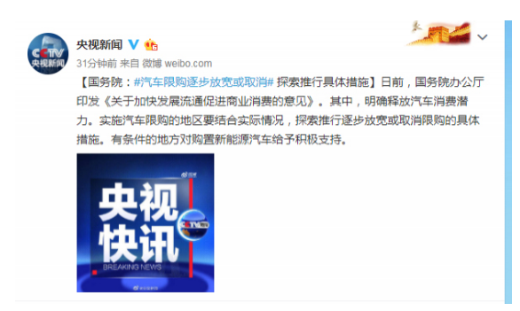 國(guó)務(wù)院說了未來汽車限購(gòu)逐步放寬或取消但正在探索推行具體措施