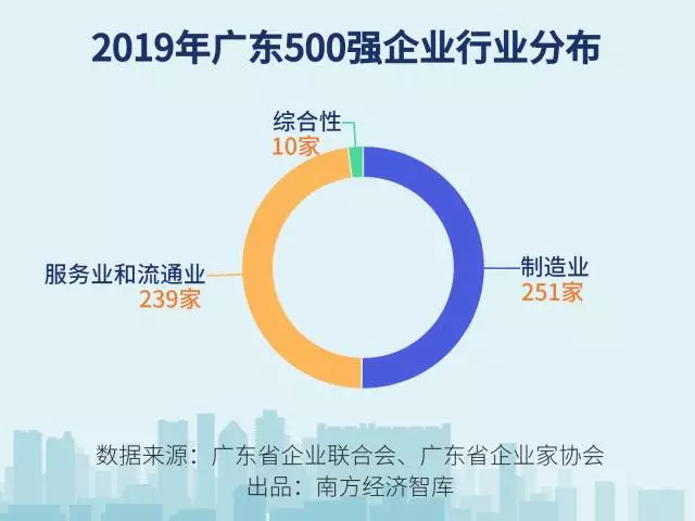 從行業(yè)分布來看,制造業(yè)企業(yè)251家,占比50.2%;服務業(yè)和流通業(yè)企業(yè)239家,占比47.8%;綜合性企業(yè)10家。